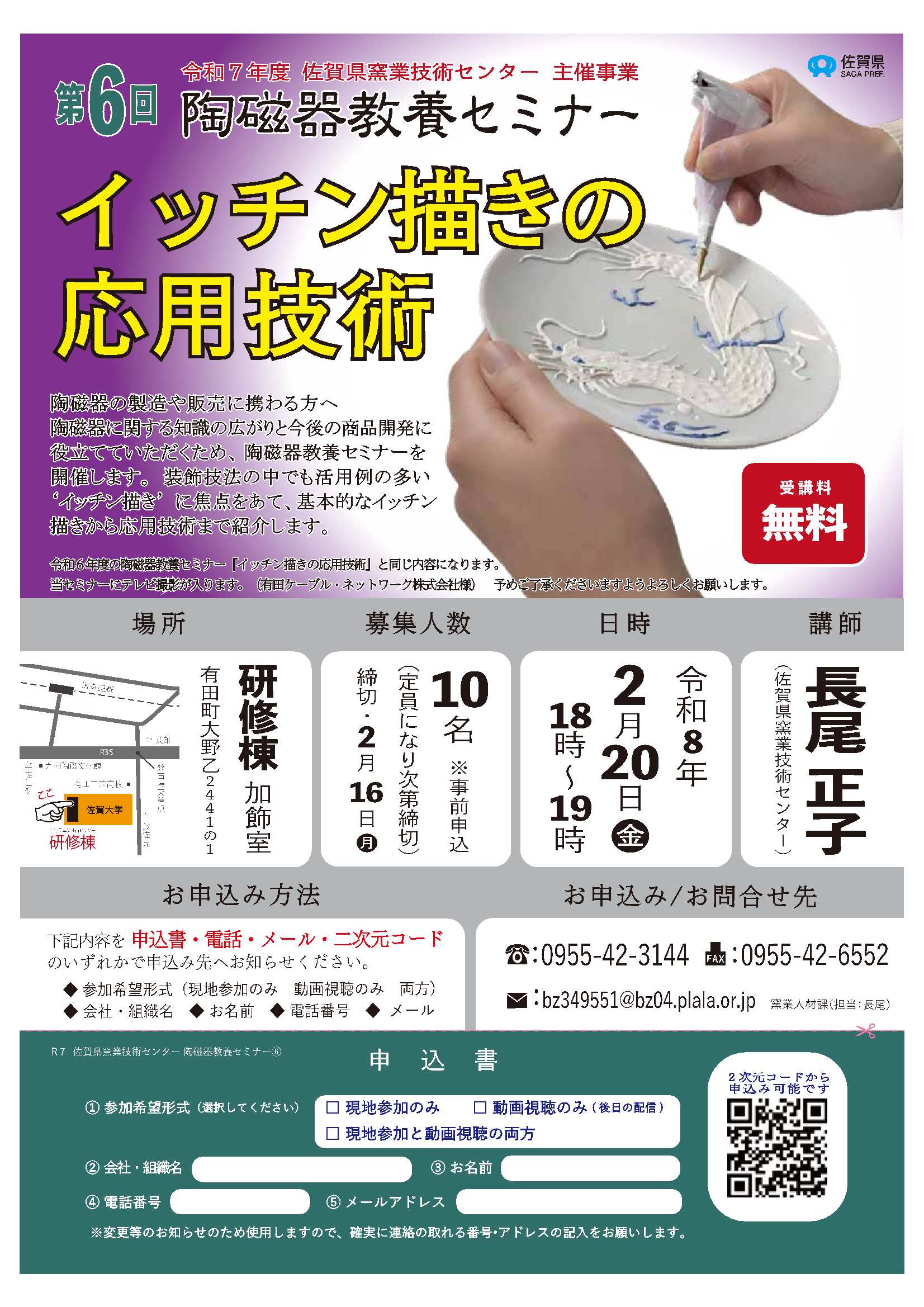 | 申込先 | 佐賀県窯業技術センター 窯業人材課(有田町大野乙2441-1)